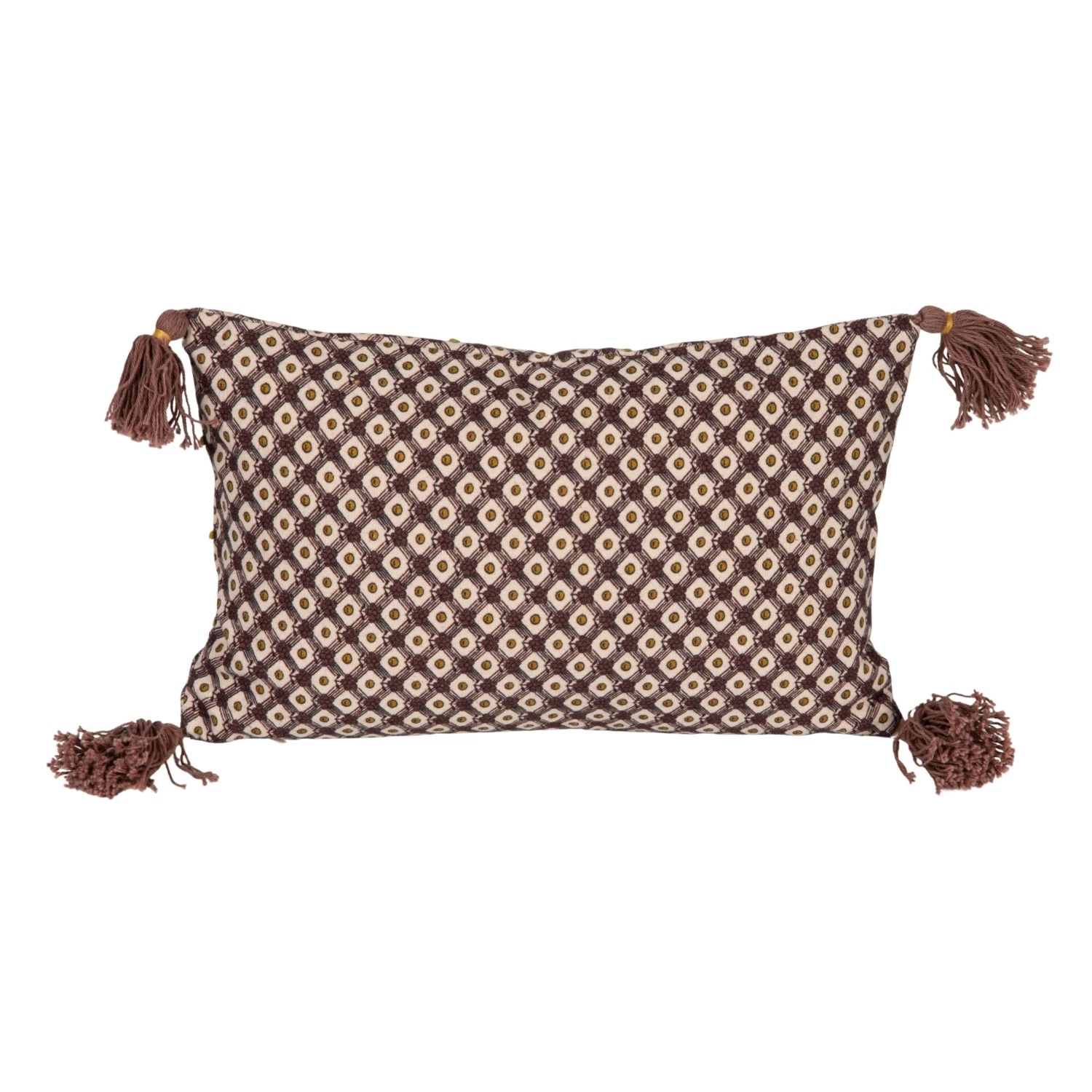 14″L x 9″H Cotton Printed Lumbar Pillow w/ Tassels, French Knots & Pattern, Multi Color