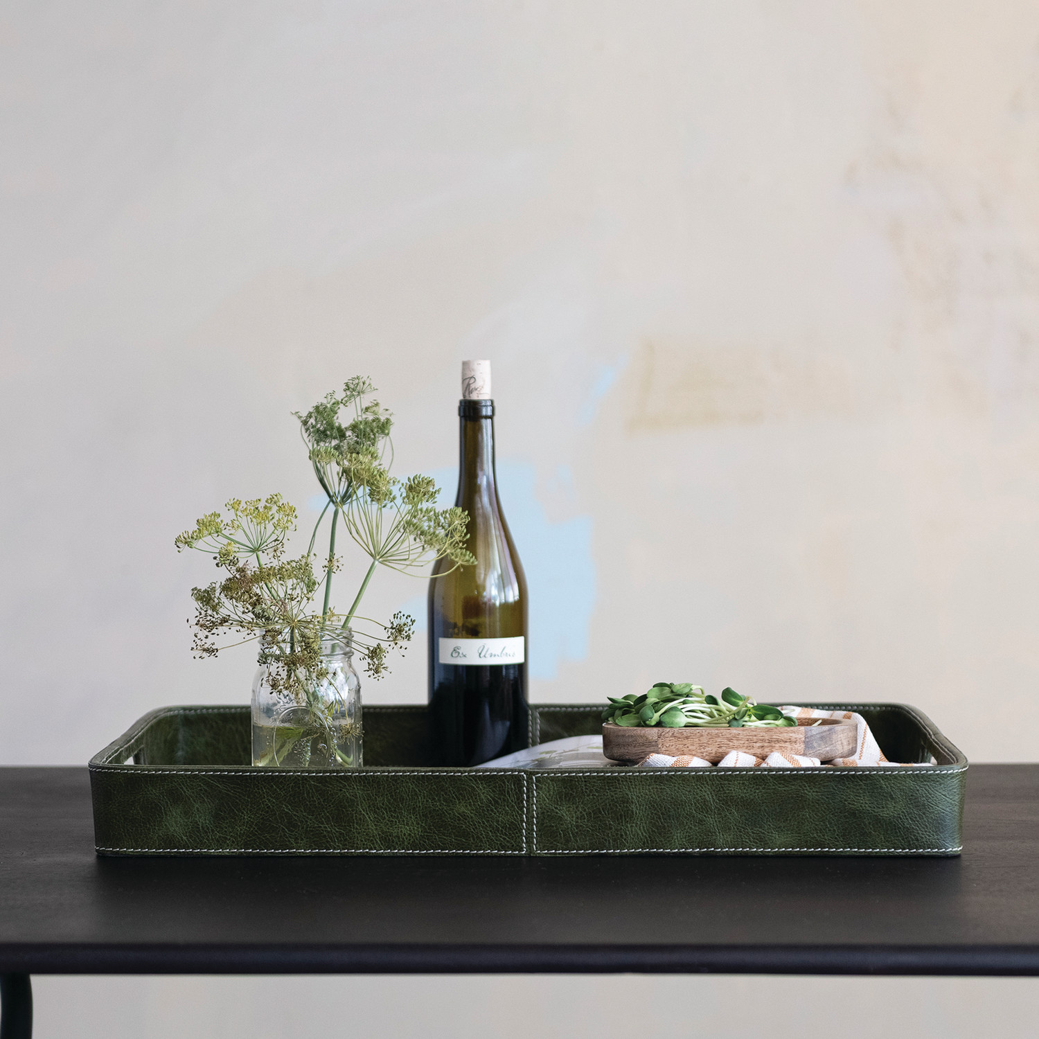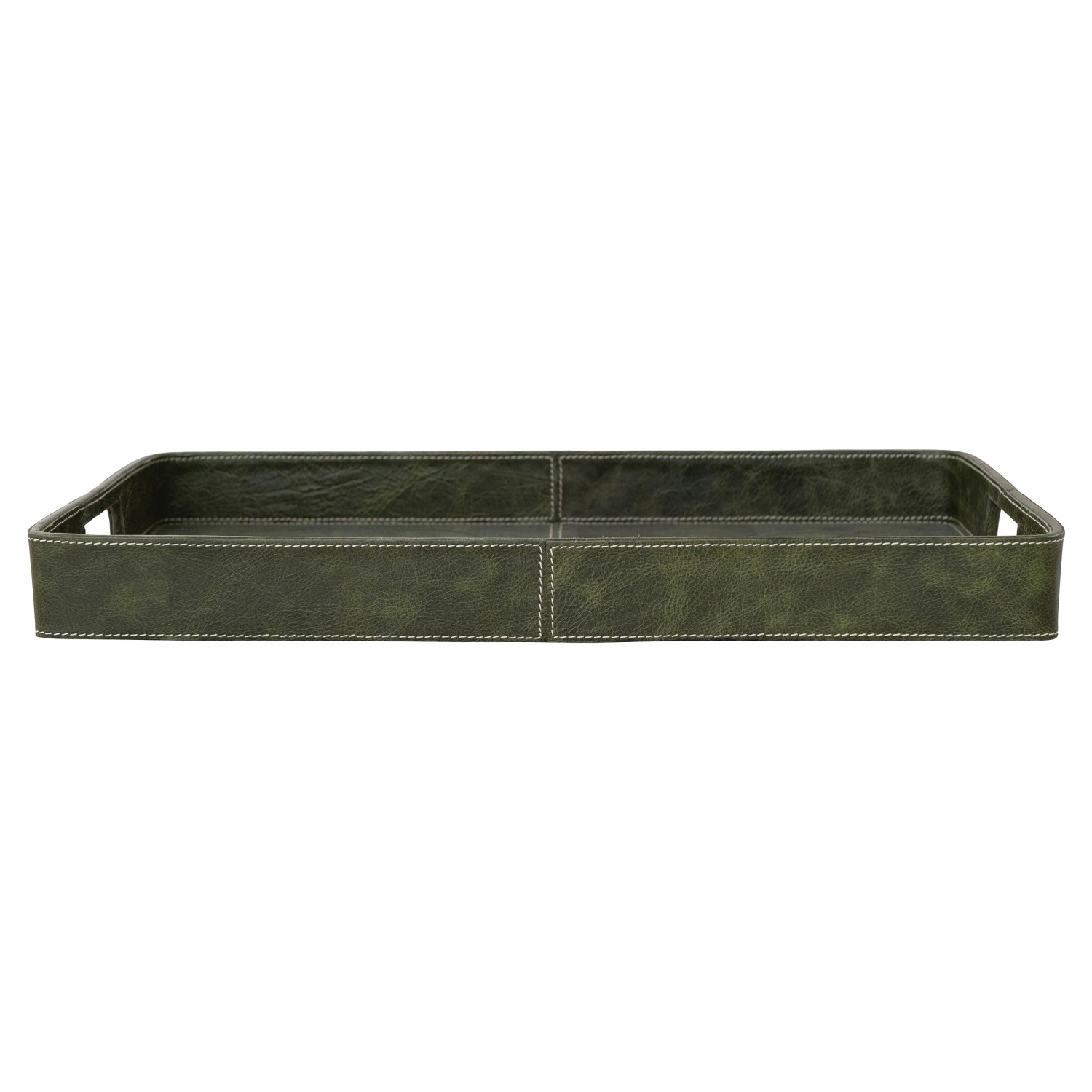 Decorative Leather & MDF Tray with Handles, Olive Color
