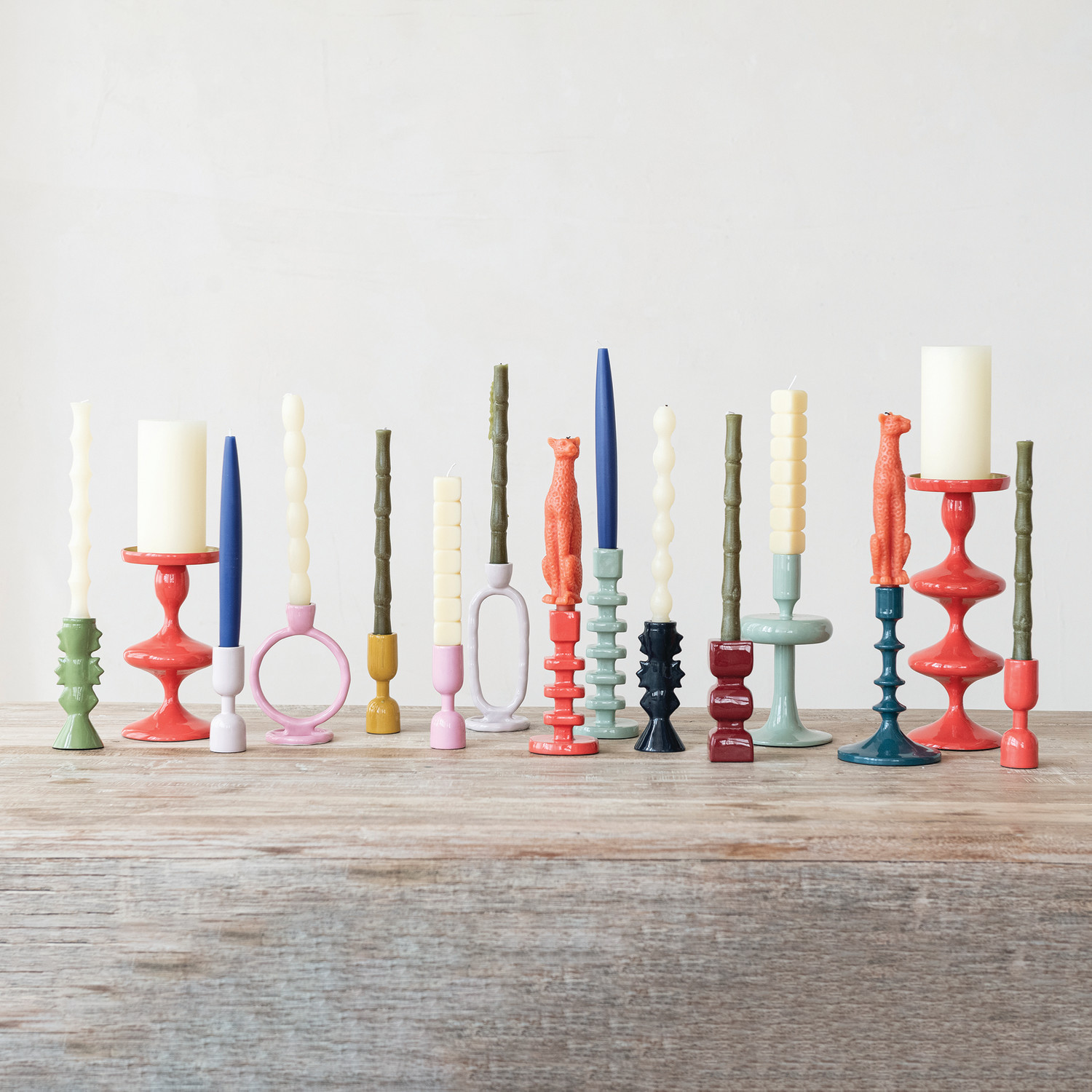 Enameled Aluminum Taper Holder, Coral Color