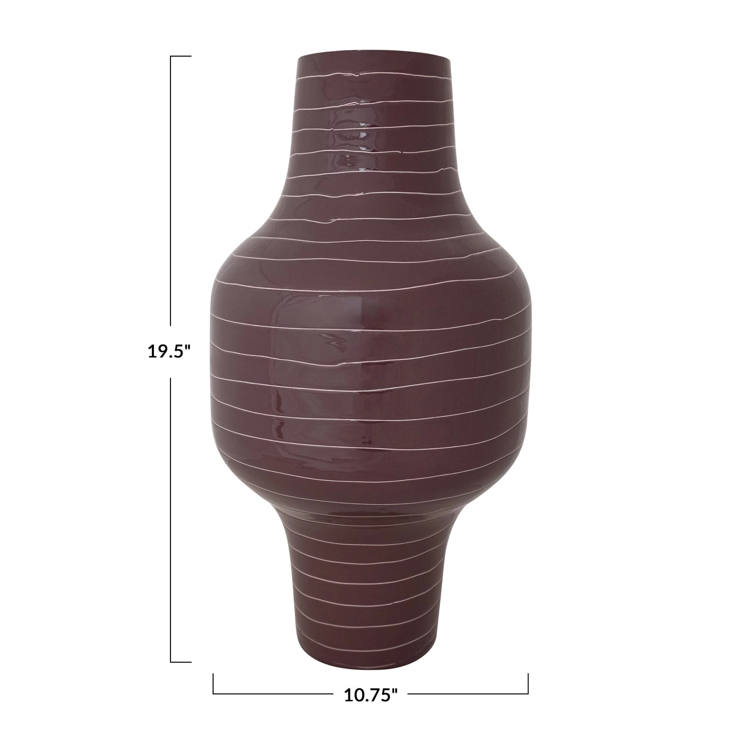 10-3/4″ Round x 19-1/2″H Enameled Metal Indoor/Outdoor Organic Striped Vase, Plum Color