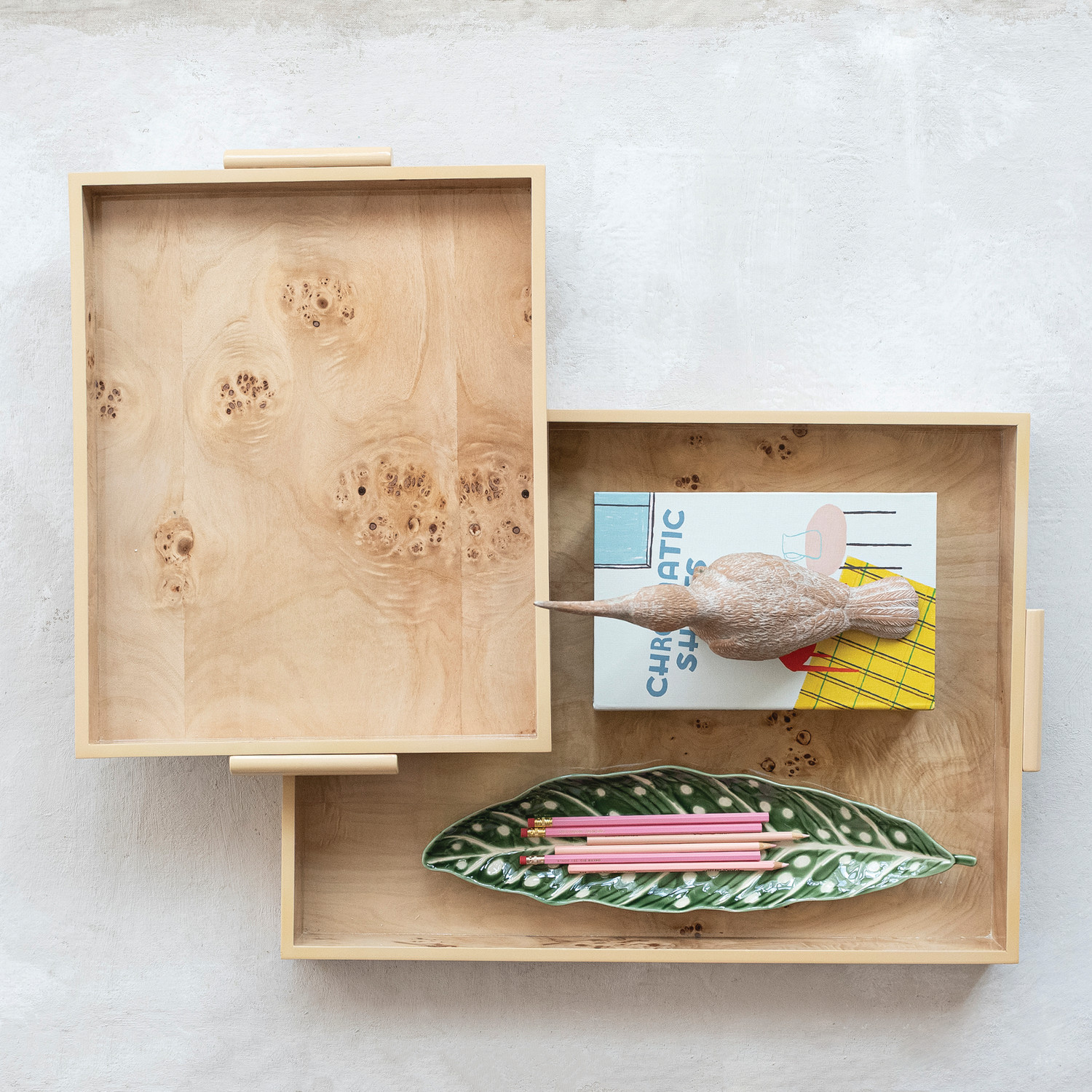 MDF & Burl Wood Veneer Trays with Handles, Natural, little