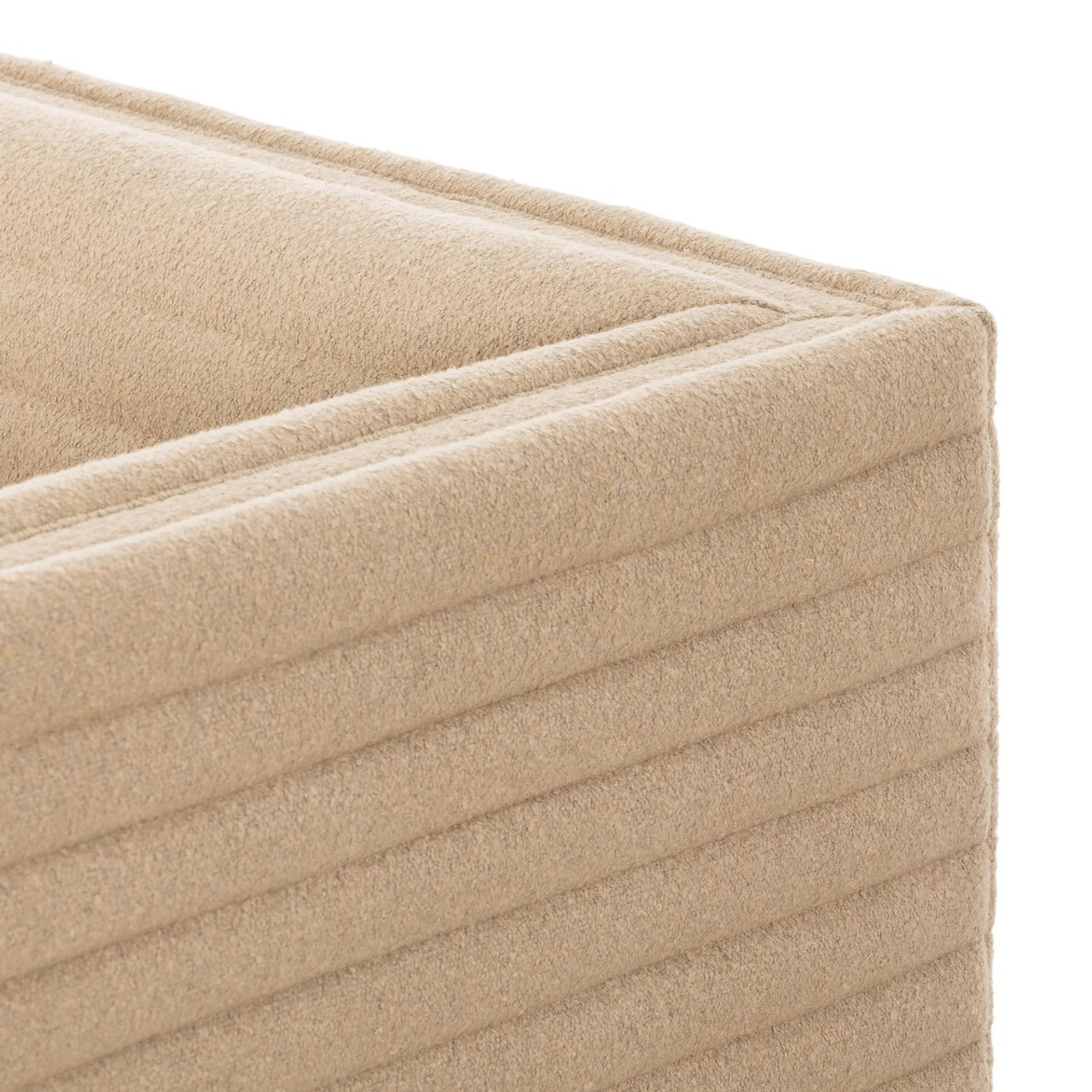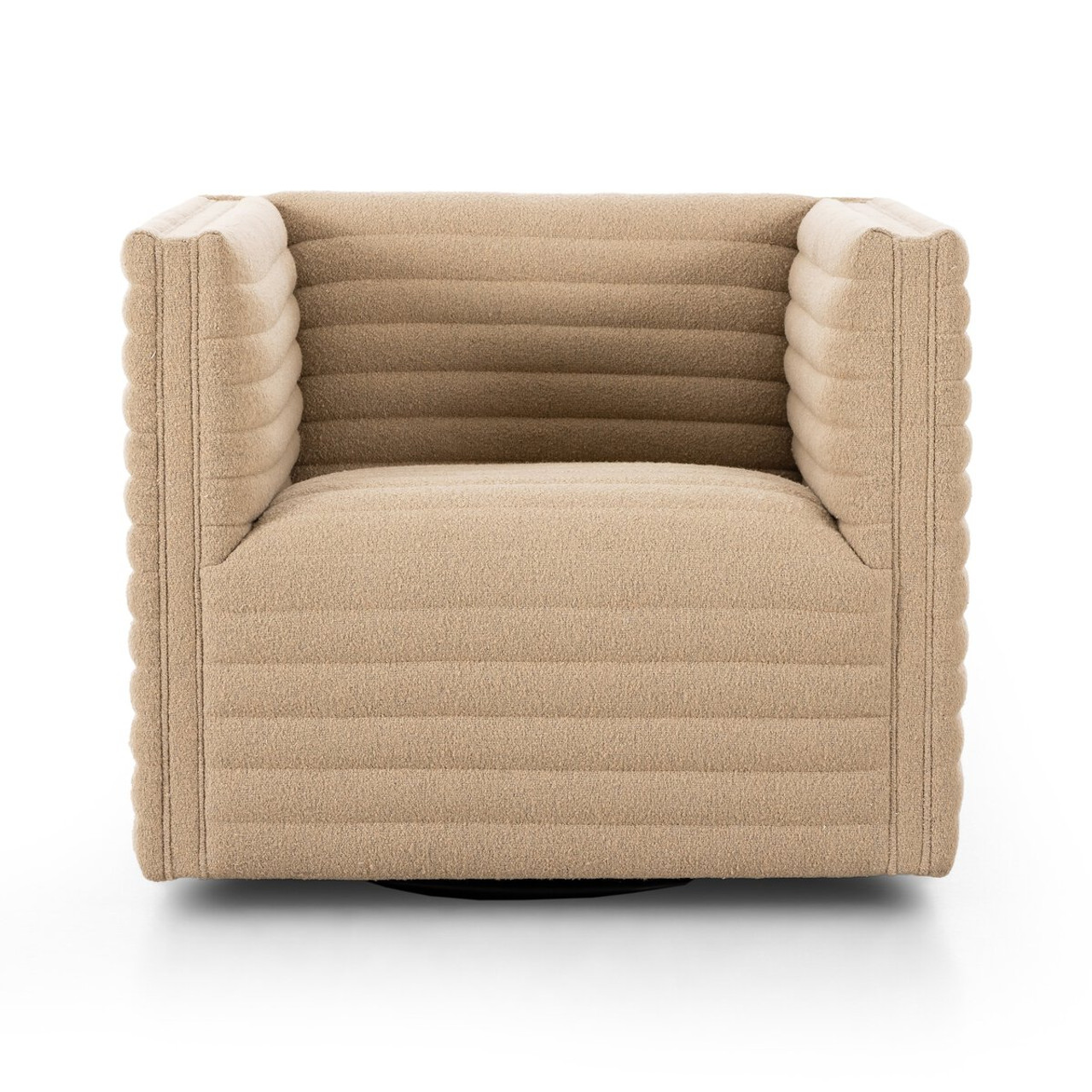 Horizontal channeling brings the structured lines trend to the forefront on this statement seat. Fully upholstered in neutral ecru leather, with a 360-degree swivel.