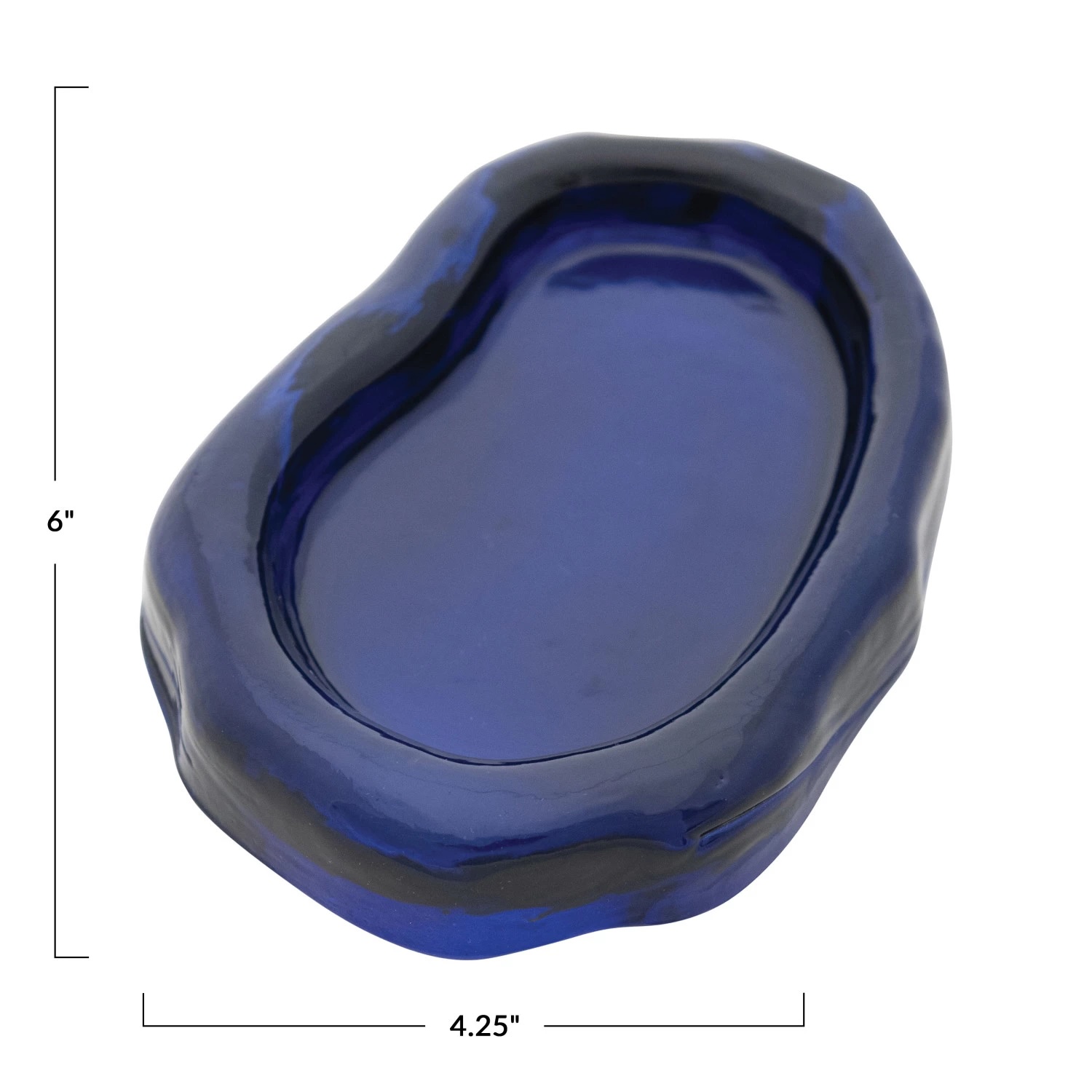 6″L x 4-1/4″W Pressed Recycled Glass Organic Shaped Dish, Blue