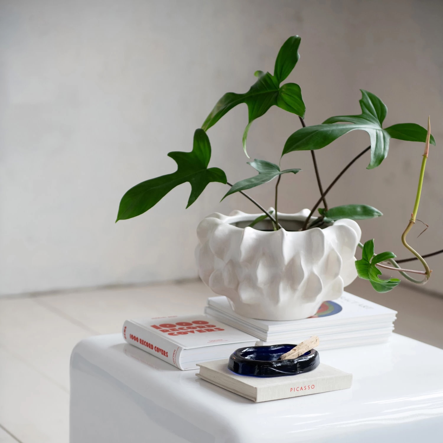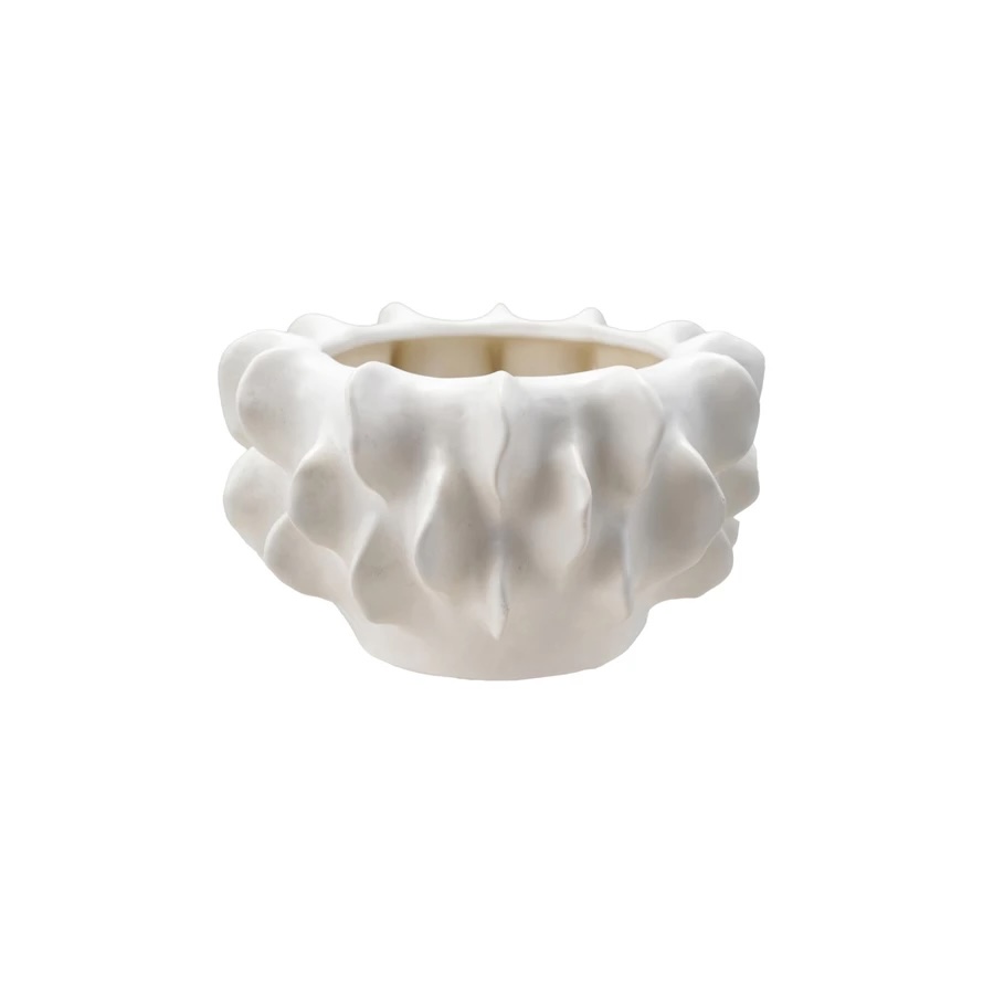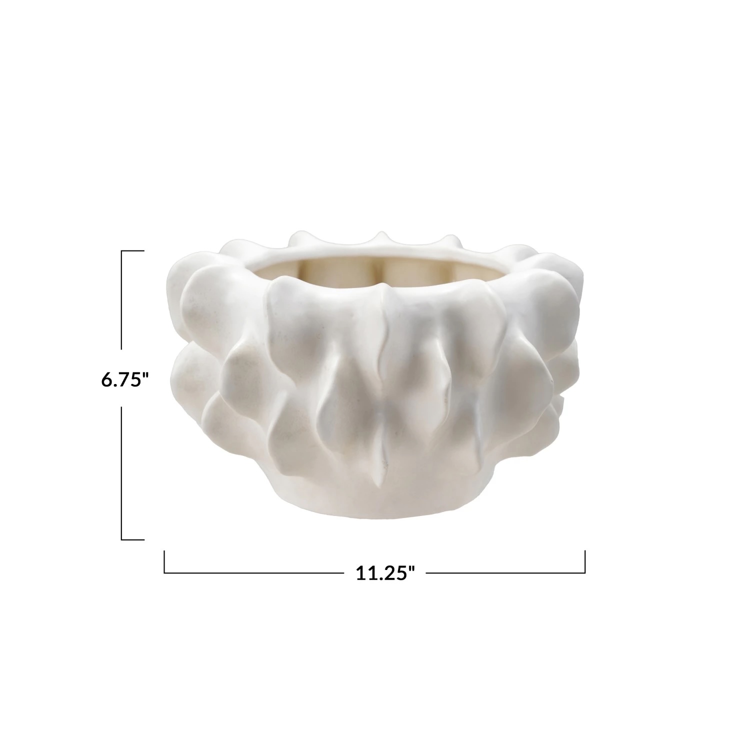11-1/4″ Round x 6-3/4″H Stoneware Sculptural Planter, Matte White (Holds 7″ Pot)