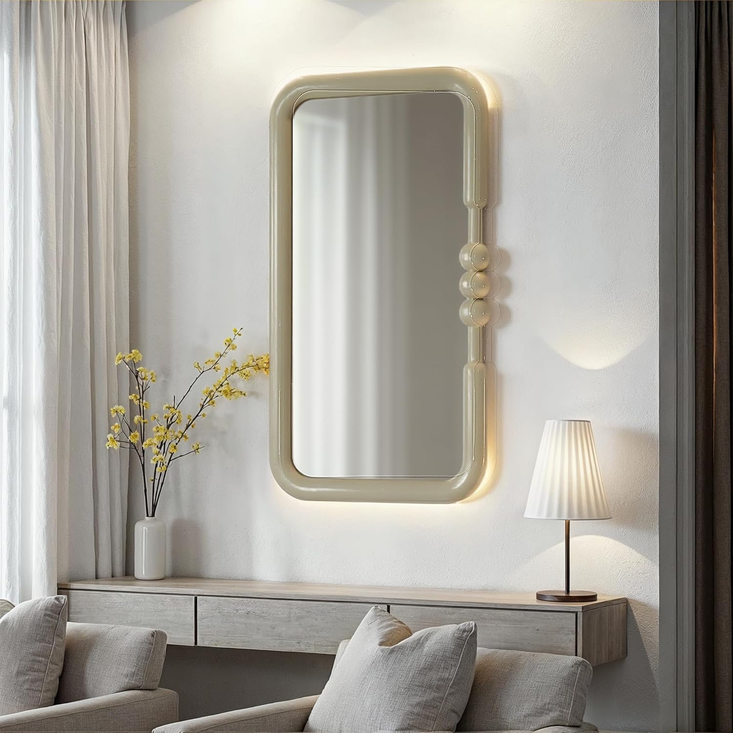 18″W x 33-3/4″H MDF Framed Wall Mirror w/ Ball Detail, Grey (Hangs Vertically & Horizontally)